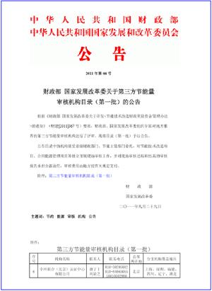2011年9月,CEC被國家財政部和國家發展改革委員會聯合批準獲得國家首批第三方節能量審核機構資格,允許CEC在全國范圍內對節能技術改造項目、合同能源管理項目等開展獨立現場審核工作。