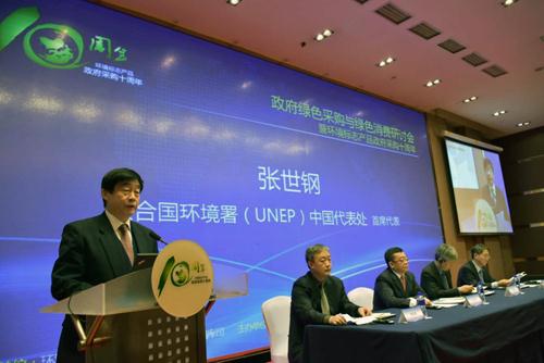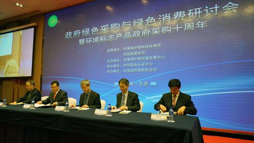 2016年12月14日,環(huán)境保護(hù)部環(huán)境發(fā)展中心在京舉辦了“政府綠色采購與綠色消費(fèi)研討會(huì)暨環(huán)境標(biāo)志產(chǎn)品政府采購十周年”活動(dòng),環(huán)境保護(hù)部科技標(biāo)準(zhǔn)司、財(cái)政部國庫司領(lǐng)導(dǎo)出席會(huì)議并致辭,來自環(huán)保部、財(cái)政部、聯(lián)合國環(huán)境署(UNEP)、中國人民大學(xué)、國際關(guān)系學(xué)院、地方采購中心等國內(nèi)、國際專家就“政府綠色采購與環(huán)境保護(hù)”“政府綠色采購與綠色供給”“綠色消費(fèi)與綠色供應(yīng)鏈”等主題展開深入交流。