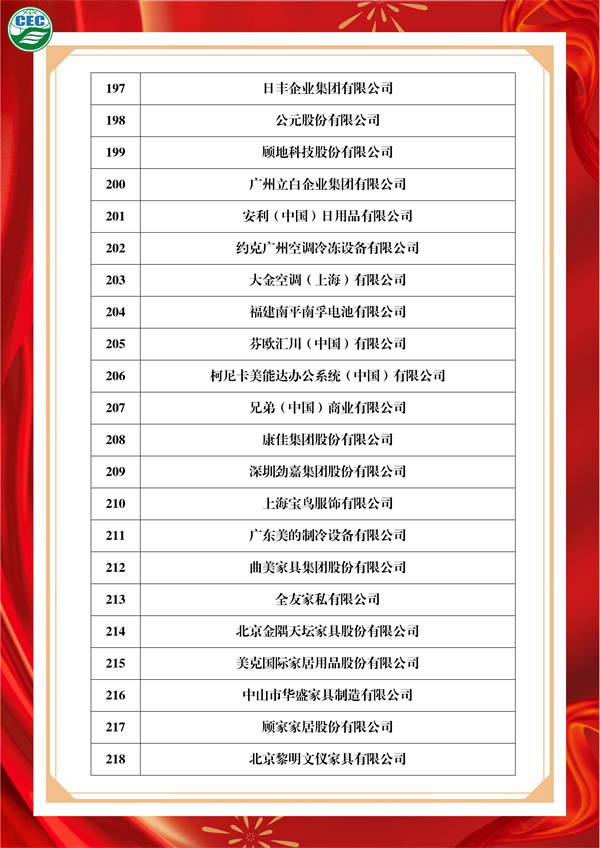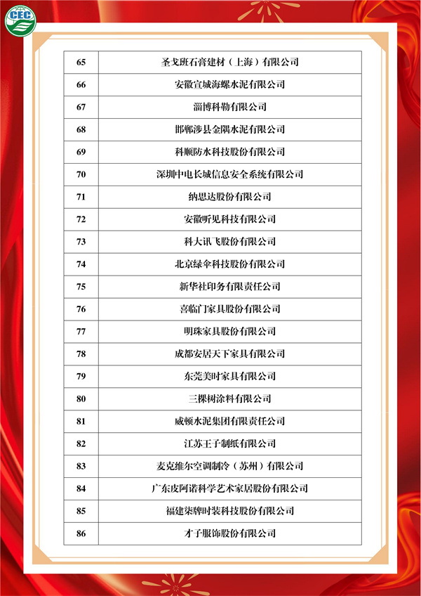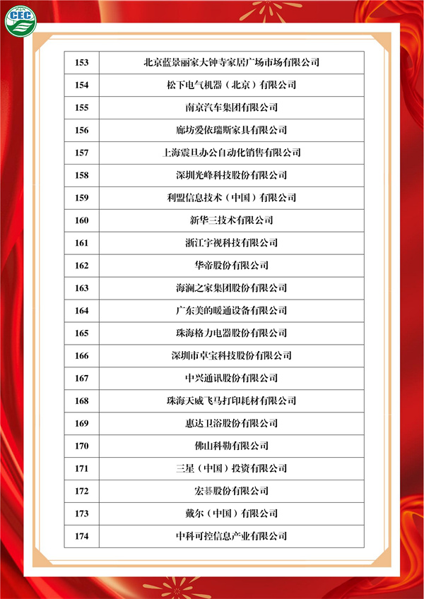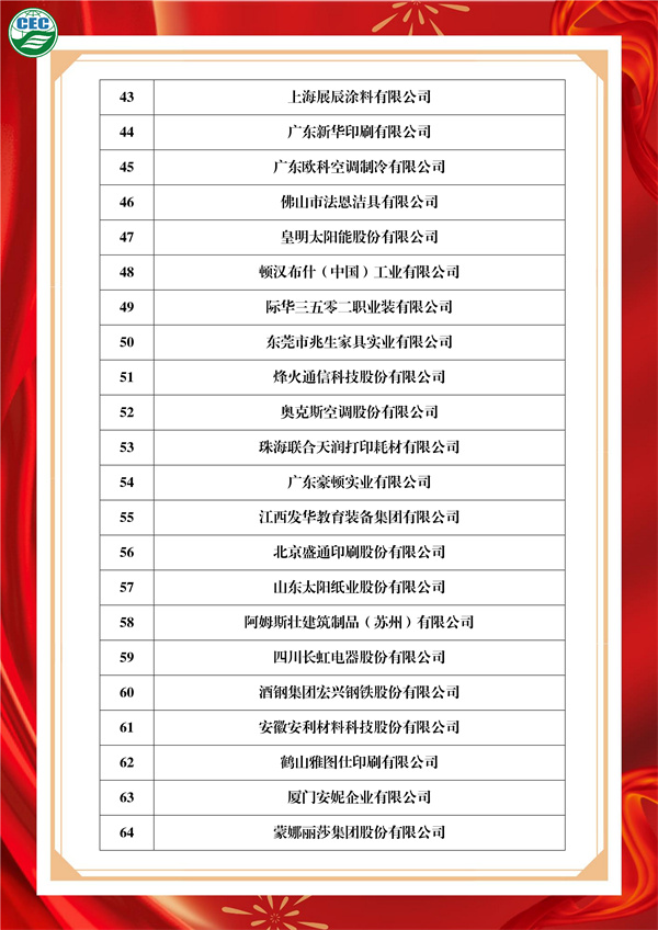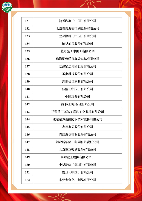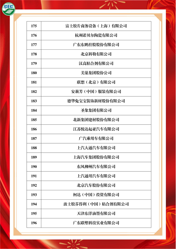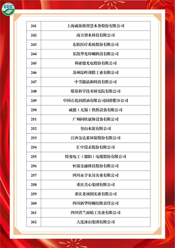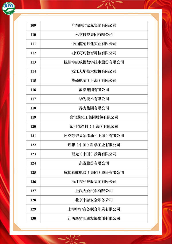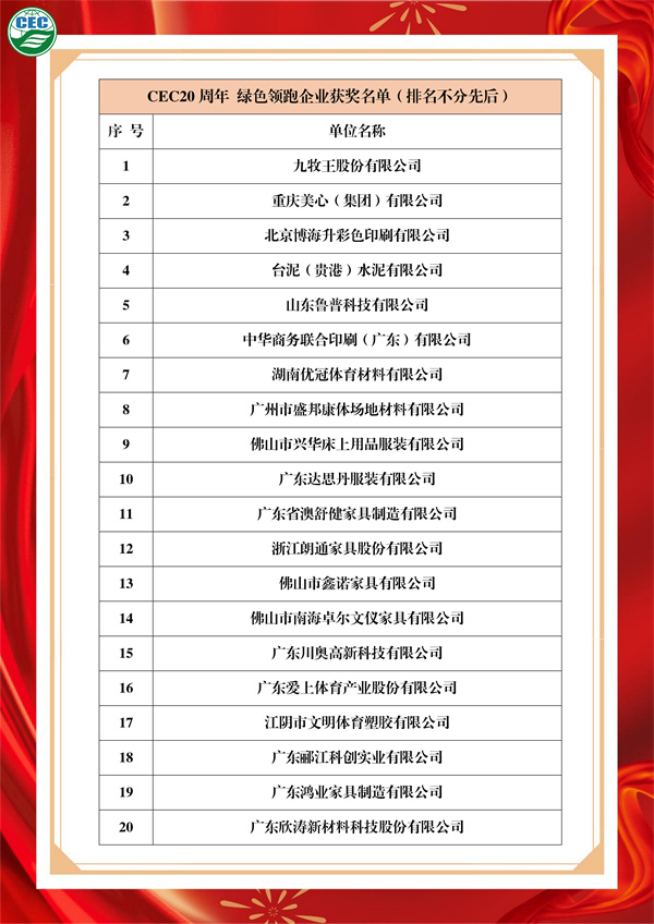 CEC20年 綠色領(lǐng)跑企業(yè)獲獎名單