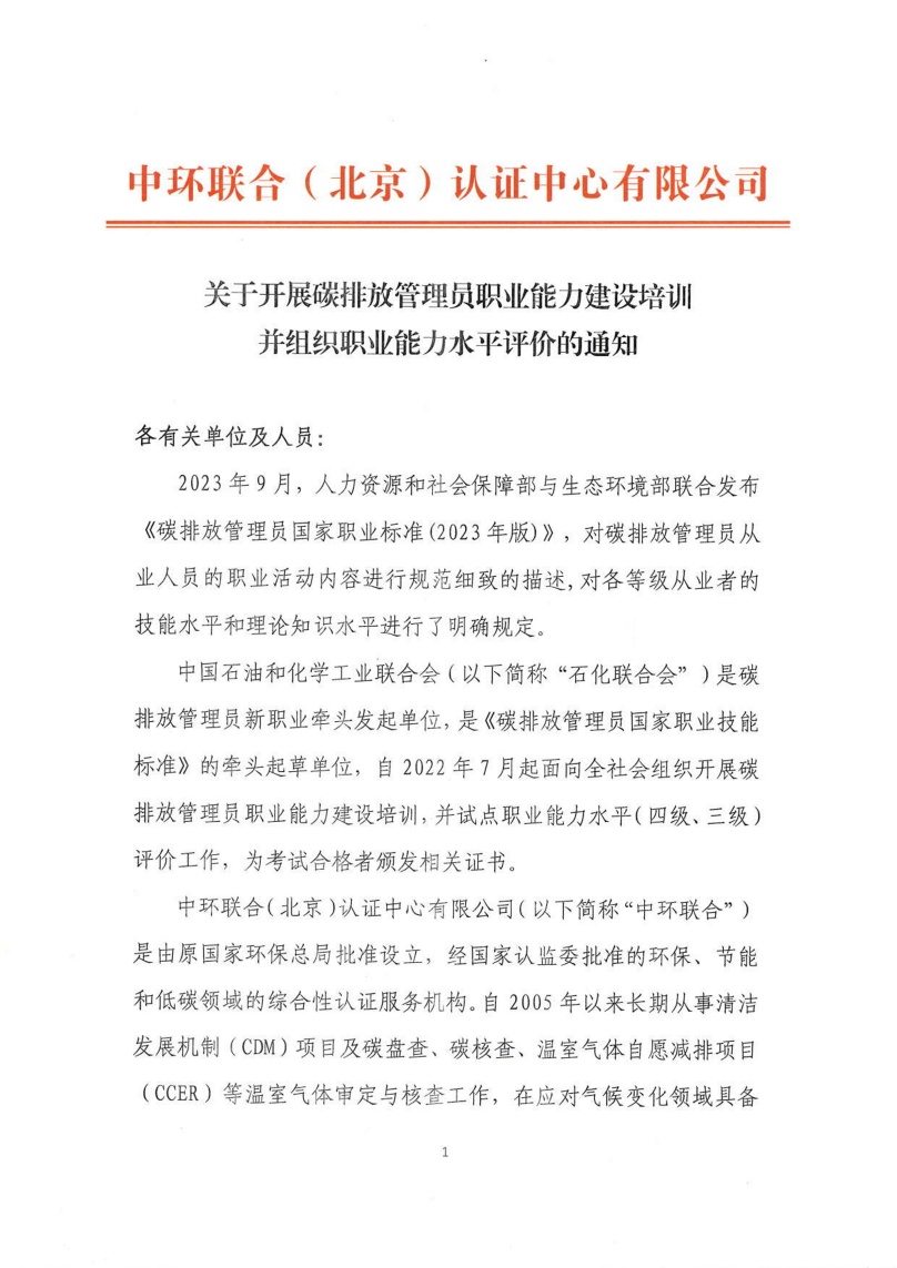 關于開展碳排放管理員職業能力建設培訓并組織職業能力水平評價的通知