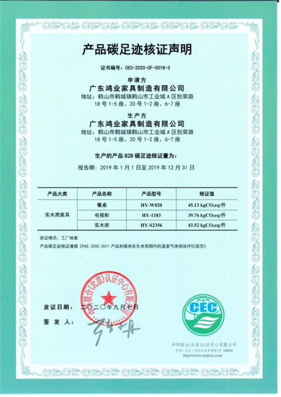 廣東鴻業家具制造有限公司 CEC-2020-CF-0018-3-實木類家具