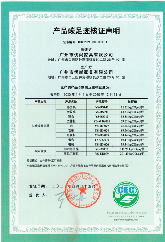 下一篇:廣州市優(yōu)尚家具有限公司CEC-2021-PCF-0030-1碳足跡證書2