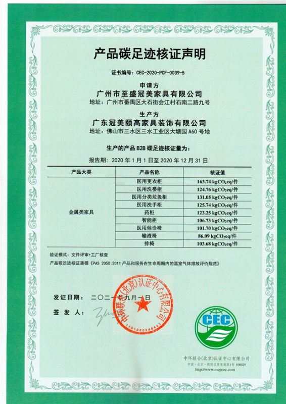 下一篇:廣東冠美頤高家具裝飾有限公司碳足跡證書-CEC-2021-PCF-0039-4-鋼木類家具+金屬類家具