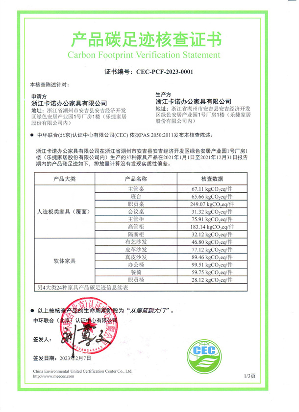 下一篇:東莞兆生家具實(shí)業(yè)有限公司沙田分公司-CEC-PCF-2023-0016