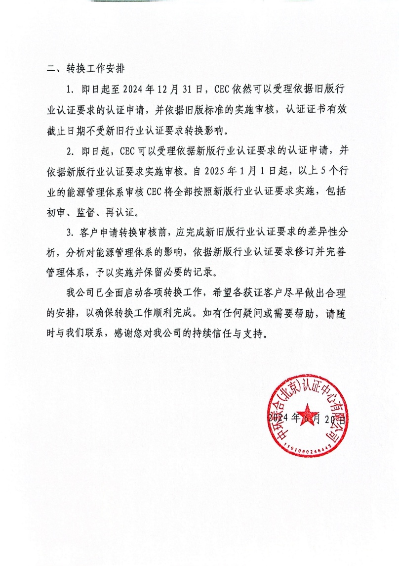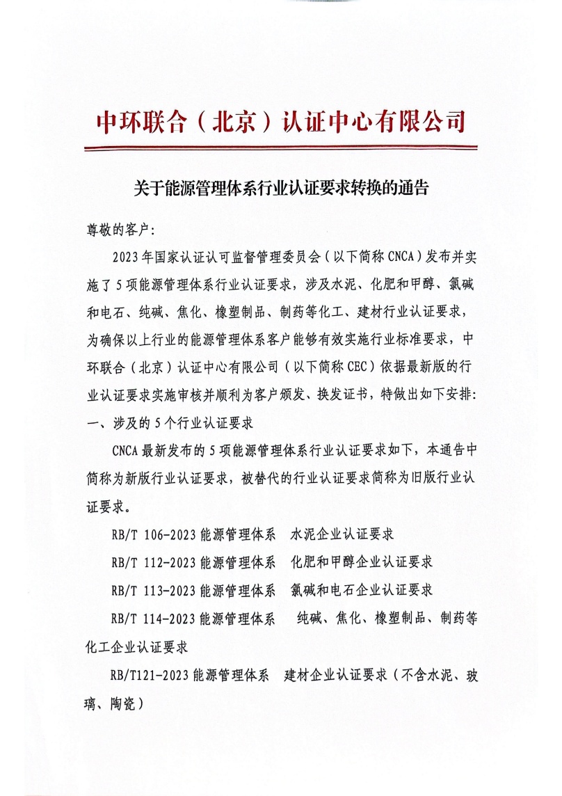 關于能源管理體系行業認證要求轉換的通知