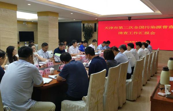 抵達當日,檢查組隨即聽取了天津市普查清查工作情況匯報,天津市普查領導小組副組長、市環保局局長溫武瑞同志及市普查領導小組成員單位成員20余人參加了會議。
