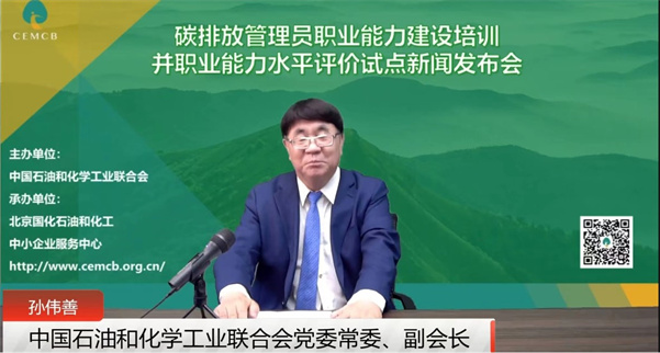 本次新聞發(fā)布會由碳排放管理員新職業(yè)的發(fā)起單位中國石油和化學(xué)工業(yè)聯(lián)合會產(chǎn)業(yè)發(fā)展部戚志強主任主持,中國石油和化學(xué)工業(yè)聯(lián)合會黨委常委/副會長孫啟善、產(chǎn)業(yè)發(fā)展部李永亮副主任、國化中心王靜敏主任分別就碳排放管理員職業(yè)能力建設(shè)培訓(xùn)和職業(yè)能力水平評價要求、碳排放管理員職業(yè)功能和工作內(nèi)容及其應(yīng)具備的知識和技能、碳排放管理員職業(yè)能力建設(shè)培訓(xùn)及試點職業(yè)能力水平評價工作情況進行了介紹,3家培訓(xùn)平臺建設(shè)參與單位及4家基地代表參加了發(fā)布會。
