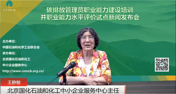 7月8日上午,中環(huán)聯(lián)合認證中心張小丹總經(jīng)理出席中國石油和化學(xué)工業(yè)聯(lián)合會(以下簡稱“石化聯(lián)合會”)主辦、北京國化石油和化工中小企業(yè)服務(wù)中心(以下簡稱“國化中心”)承辦的碳排放管理員職業(yè)能力建設(shè)培訓(xùn)并試點職業(yè)能力水平評價新聞發(fā)布會并代表碳排放管理員職業(yè)能力建設(shè)基地進行了致辭。