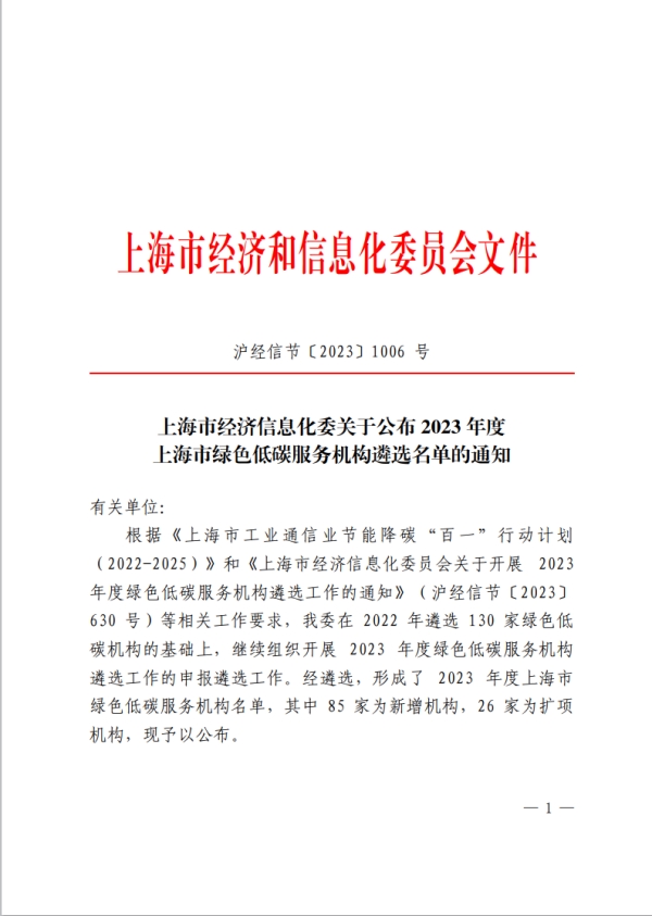 2023年11月20日,上海市經(jīng)濟(jì)和信息化委員會發(fā)布了《上海市經(jīng)濟(jì)信息化委關(guān)于公布2023年度上海市綠色低碳服務(wù)機(jī)構(gòu)遴選名單的通知》(滬經(jīng)信節(jié)【2023】1006號),中環(huán)聯(lián)合(北京)認(rèn)證中心有限公司(以下簡稱CEC)成功入選,成為上海市碳管理、綠色評價、管理體系認(rèn)證的第三方服務(wù)機(jī)構(gòu)。