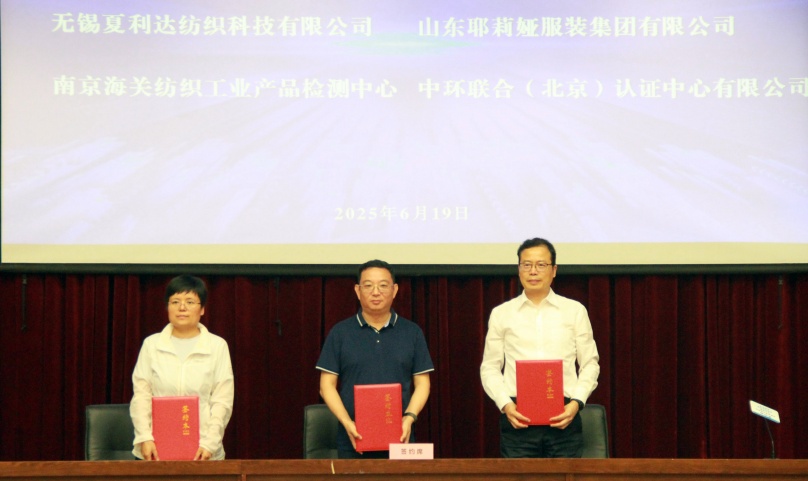 會上,中環聯合攜手青島市產品質量檢驗研究院、南京海關紡織工業產品檢測中心、無錫紡織工業協會聯合發布了《生態產品認證技術規范 紡織品》標準,并與多家紡織企業簽署了生態紡織品檢測認證意向合作協議,共同推動生態標簽在紡織價值鏈的規?;瘧?,加速綠色轉型進程,并賦能可持續公共采購。