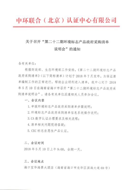 “第二十二期環(huán)境標(biāo)志產(chǎn)品政府采購(gòu)清單說(shuō)明會(huì)”會(huì)議回執(zhí)