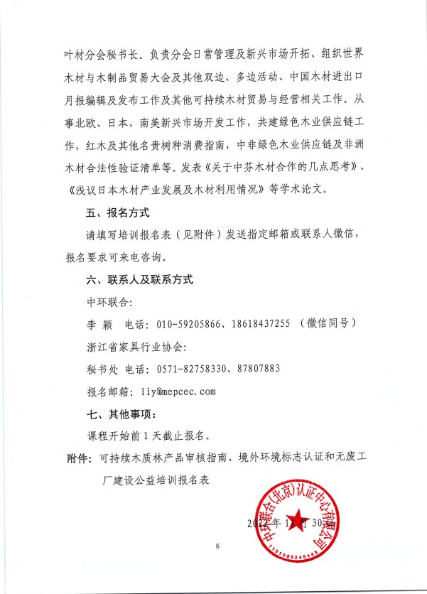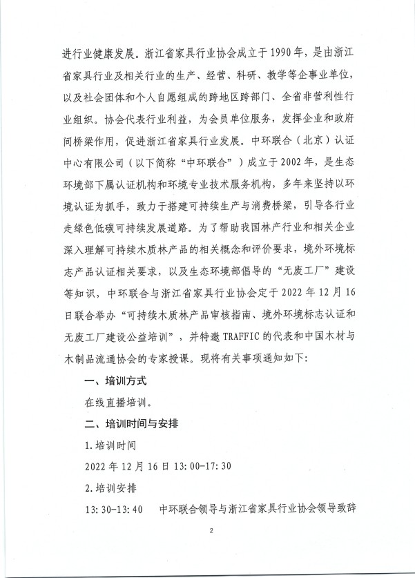 關(guān)于舉辦“可持續(xù)木質(zhì)林產(chǎn)品審核指南、境外環(huán)境標(biāo)志認(rèn)證和無(wú)廢工廠建設(shè)公益培訓(xùn)”的通知