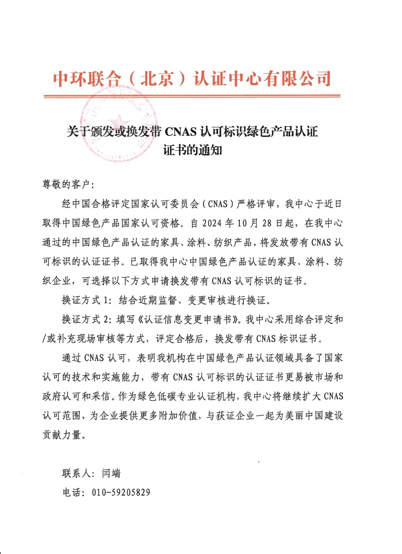 關于頒發或換發帶CNAS認可標識綠色產品認證證書的通知