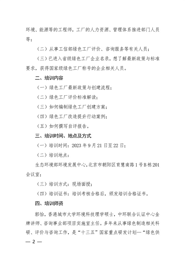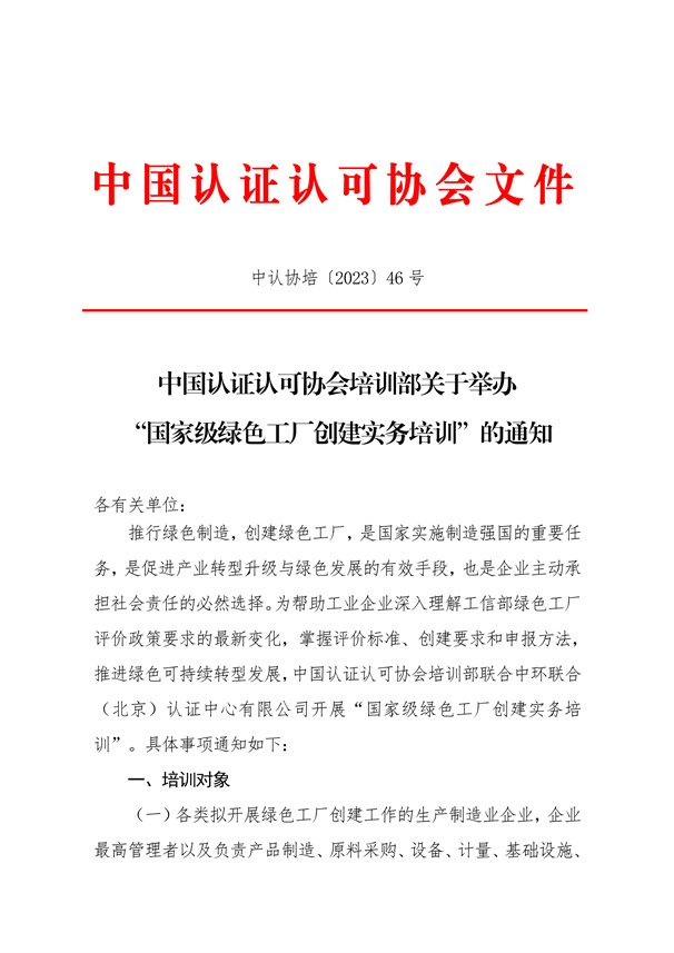 中國認證認可協會培訓部關于舉辦“國家級綠色工廠創建實務培訓”的通知
